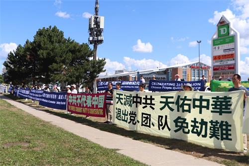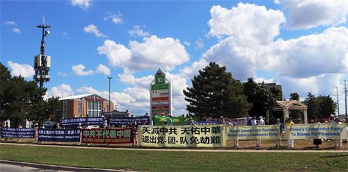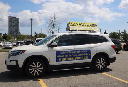 集会结束后,法轮功学员们用汽车真相展板的形式组成“真相车队”,33辆汽车从太古广场沿三条线路出发,来回巡游,在华人聚居的士嘉堡、万锦市及约克区的主要繁忙街道,包括芬奇大街(Finch Ave.)、斯蒂尔斯大街(steels Ave.)及7号公路(HWY 7)等来回巡游,时间持续1个半小时。