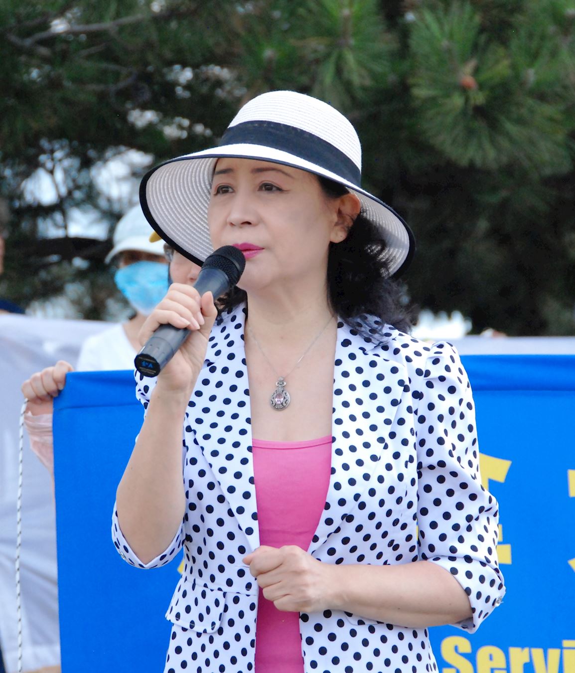 港加联主席冯玉兰在集会上发言,赞扬法轮功学员在自身遭受迫害的情况下,仍然无惧无畏地揭露中共邪恶,向民众讲真相,做出了巨大的贡献。她呼吁大家共同努力,共同见证中共灭亡的一天。她说:“三亿六千多万党员退!党!,这个是一个非常亮丽的成绩。抵抗中共的暴政集权,捍卫宗教自由,言论自由、民主、人权,无论是在加拿大、大陆、香港和世界各地,我们继续努力,希望很快一起看到中共灭亡的一天!”