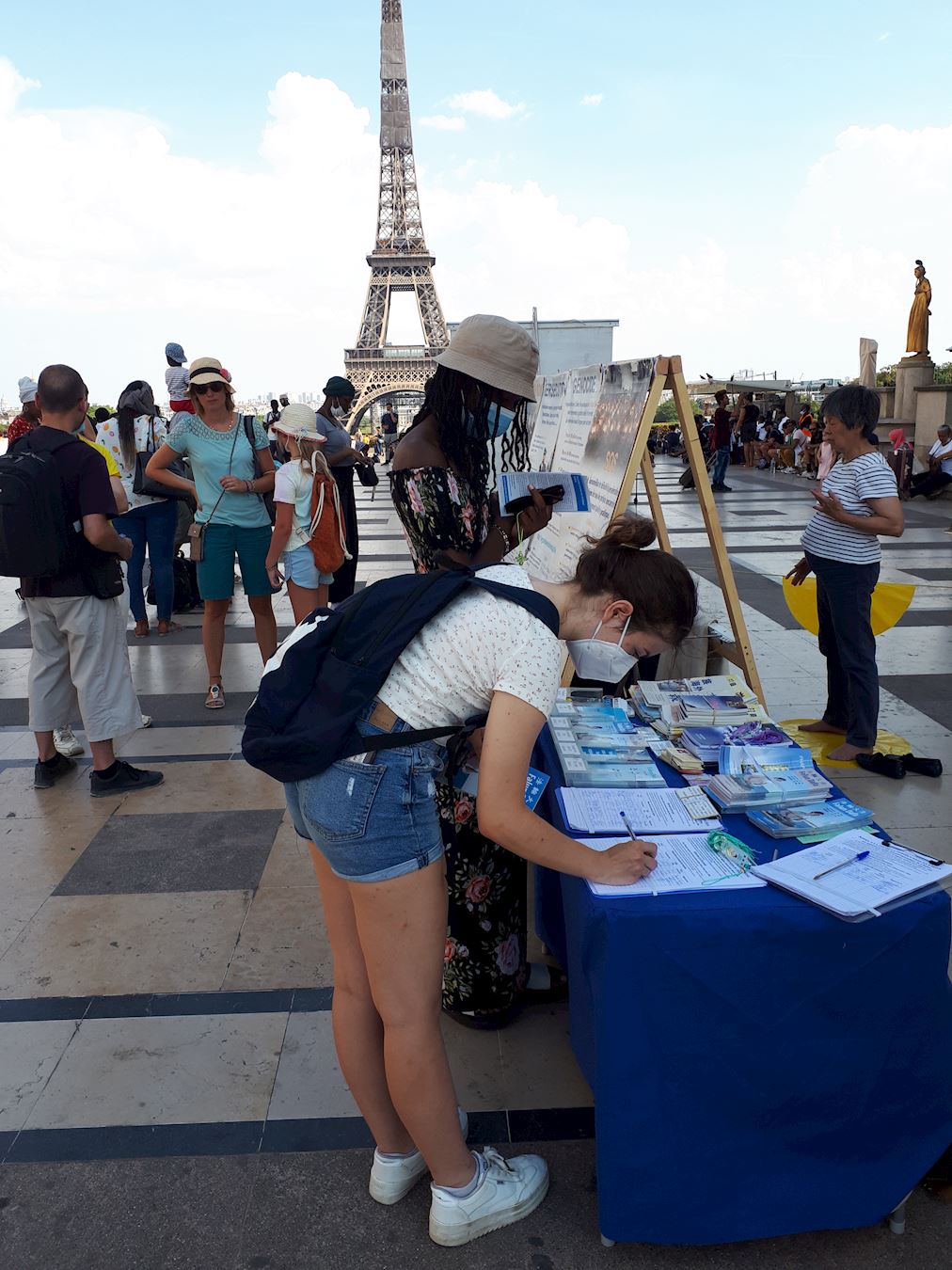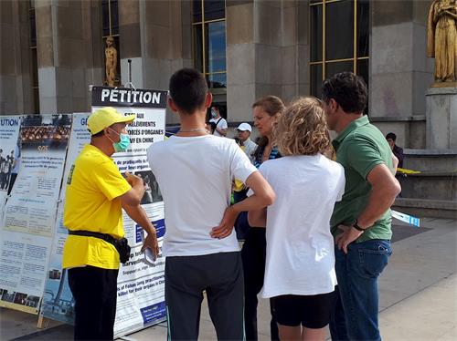 经历了中共病毒在全球的肆虐,人们逐渐认清中共的邪恶本质给人类带来的威胁。很多人是第一次遇见法轮功。得知中共迫害修炼“真、善、忍”的法轮功学员,甚至强行摘取人体器官,人们非常震惊,毫不犹豫地在征签表上签字,希望立即制止中共恶行。有的人对法轮功学员竖起大拇指,有的人鼓励法轮功学员坚持下去。两个年轻的大学生加入了炼功的行列,和法轮功学员一起炼完五套功法。