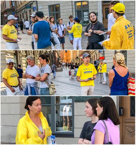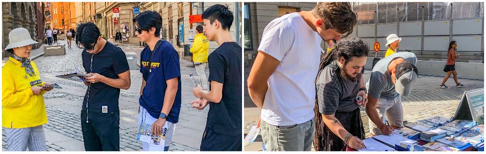“我喜欢中国这个古老文明的古国,但我不喜欢中国政府,它(中共)执政以来干了很多的坏事。”来自哥德堡的阿佩尔贝格(Applberg)站在真相展板前,用中文和一位法轮功学员聊了很久。阿佩尔贝格是一位住在哥德堡的瑞典人,他在签字簿上签了字后,用流畅的中文告诉学员,他学习中文已经四年了。他在上海生活了一年,还去过香港。谈到目前香港已经变成了这个样子时,他很难过。他说,他曾经了解了一些法轮功真相。那是去法国旅游时遇到过法轮功,还得到了一本《·九·评*共产党》。在哥德堡也遇到过法轮功,但在中国时那是绝对看不到的。他相信学员讲的都是事实。他表示很敬佩法轮功学员的勇气。回去后自己想写一些为正义发声文章,他收下了全部的真相资料。