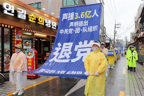 本次声援3.6亿中国人三:退.的集会游行活动由韩国法轮大法佛学会主办,学会秘书长吴世烈博士在游行前透露,“目前有一百多万名中国人居住在韩国,他们很多人由于在中国受中共谎言欺骗的毒害,不了解法轮功真相以及共产党的邪恶本质。自从美国政府考虑全面禁止中共党员及其家人入境美国的消息传出以来,退出共产党、团、队的人数猛增,而很多在韩国的中国人没有了解到这个消息。他强调,法轮功学员在这里冒雨举行活动,不是为了自己,而是为了可贵的中国人,他说,“希望通过这次活动,能够将法轮大法的美好告诉他们,并让他们知道要从共产党的三大组织中退出来的原因。”