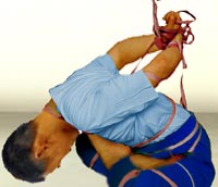 ![]() 酷刑示意图:捆绑吊胳膊 |
