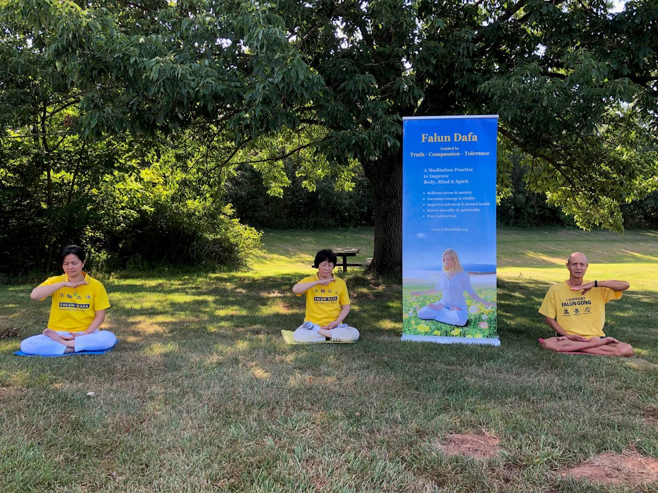 ![]() 图:桑莫塞郡的部份法轮功学员疫情期间坚持户外弘法炼功。 |