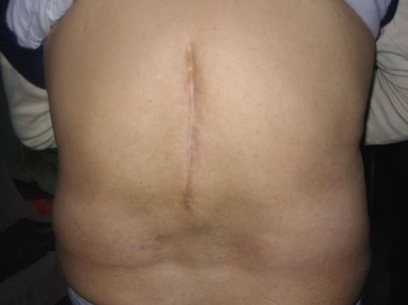 ![]() 青岩康复后的后背照,脊柱处痊愈的伤痕有十五厘米 |