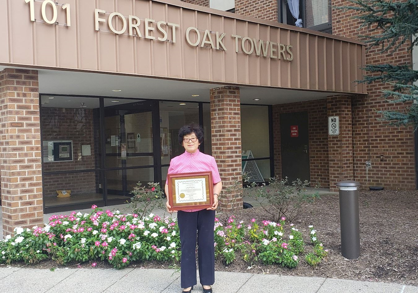 她的付出赢得了邻居们的尊重和公寓管理人员的赞许。蒙郡议会了解到这一情况后,为王春荣寄来了褒奖。