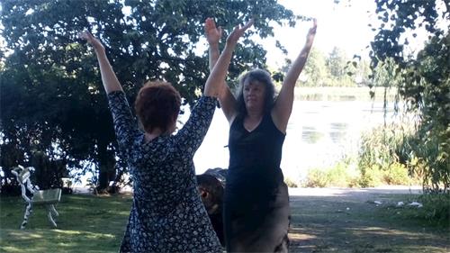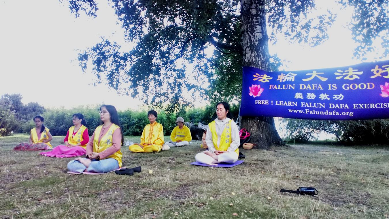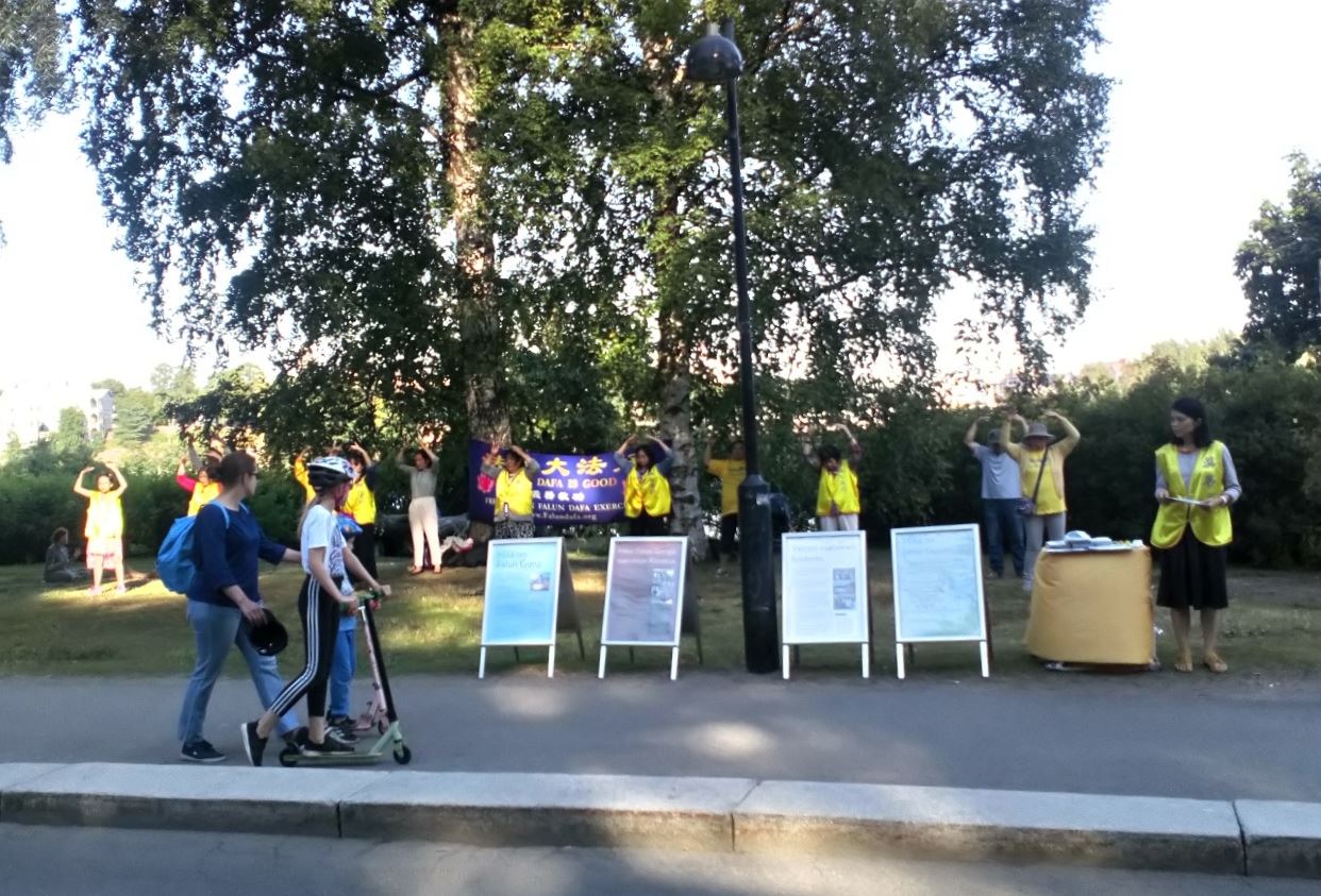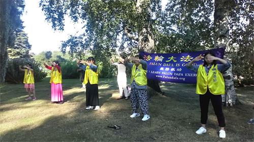 ![]() 图1~2:芬兰法轮功学员在公园集体炼功。 |