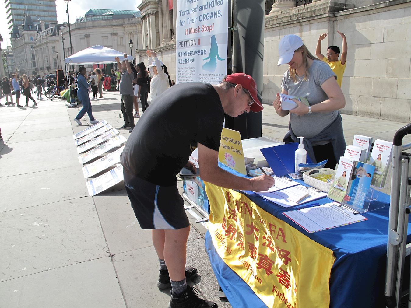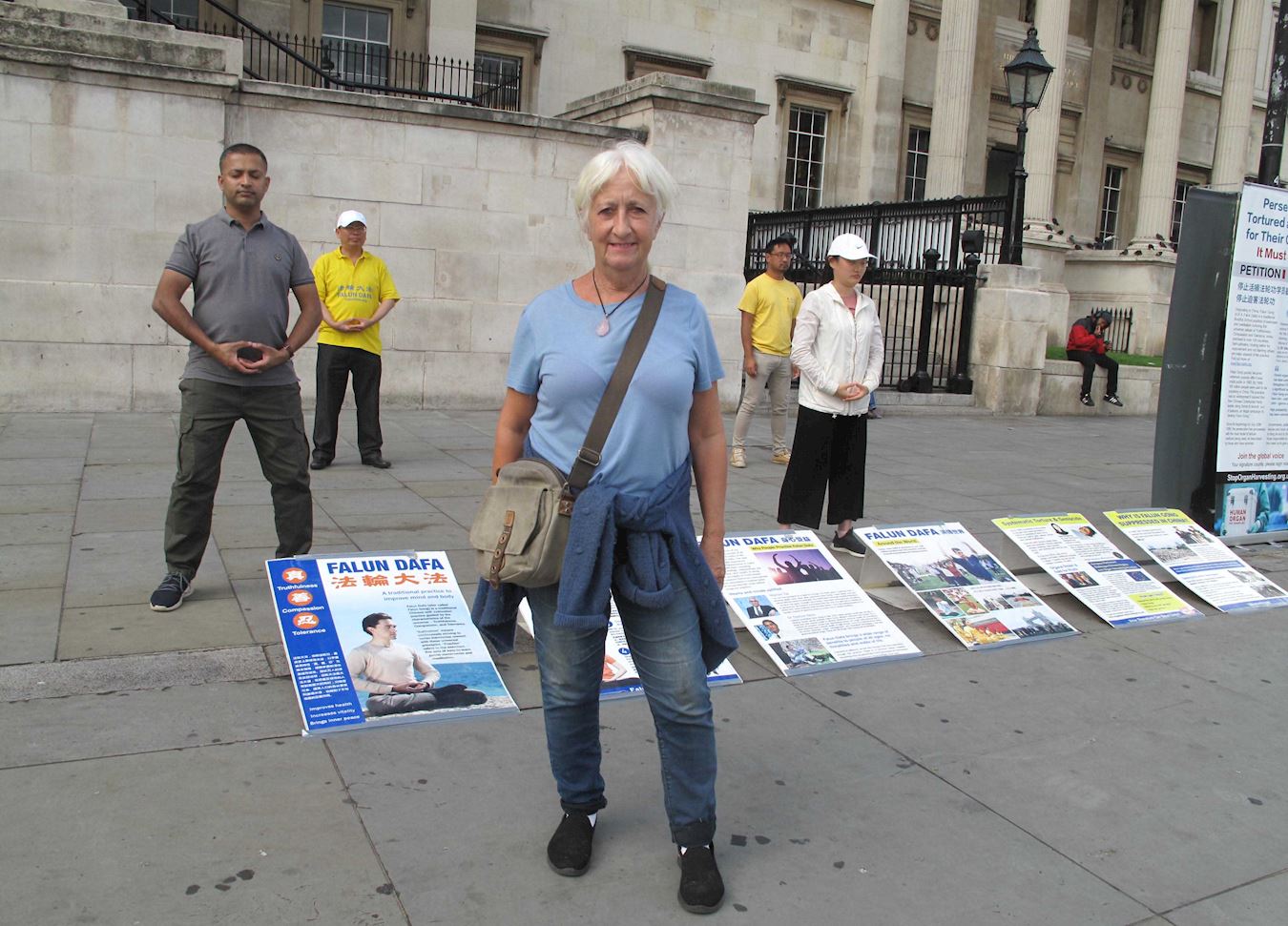 ![]() 图4:二零二零年八月二十二日,英国女士莎莉娜·塞尔温(Sallynae Selwyn)在特拉法加广场主动签名反迫害,她希望法轮功学员到每一个公园里去炼功,带给整个社会平安和平衡。 |