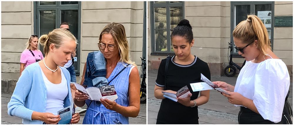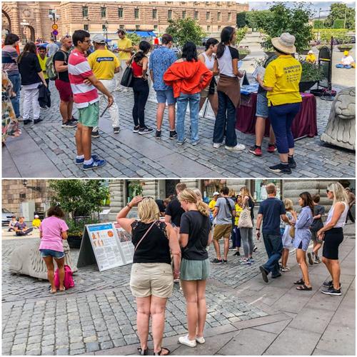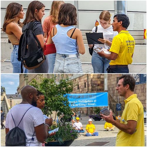 为帮助更多民众了解法轮大法的美好,认清中共对全世界的危害,共同结束中共暴行。法轮功学员从八月二十一(周五)起,每周五又增加了一次在斯德哥尔摩钱币广场的讲真相活动。申请再增加一次活动的许可很快就得到了警察局的批准。据负责申请活动的西人学员约翰(Johan)介绍,位于国会大厦旁的钱币广场,这是个很特殊的地方。很多其他团体经警察局批准后,都可以在这里举办活动,发出他们各自的呼声。然而在疫情期间,警察局批准其他团体的活动时间最多是两个小时;而对法轮功的活动是两个小时后、还可以再延长一个小时,每次法轮功增加活动次数的申请过程也都很顺利。