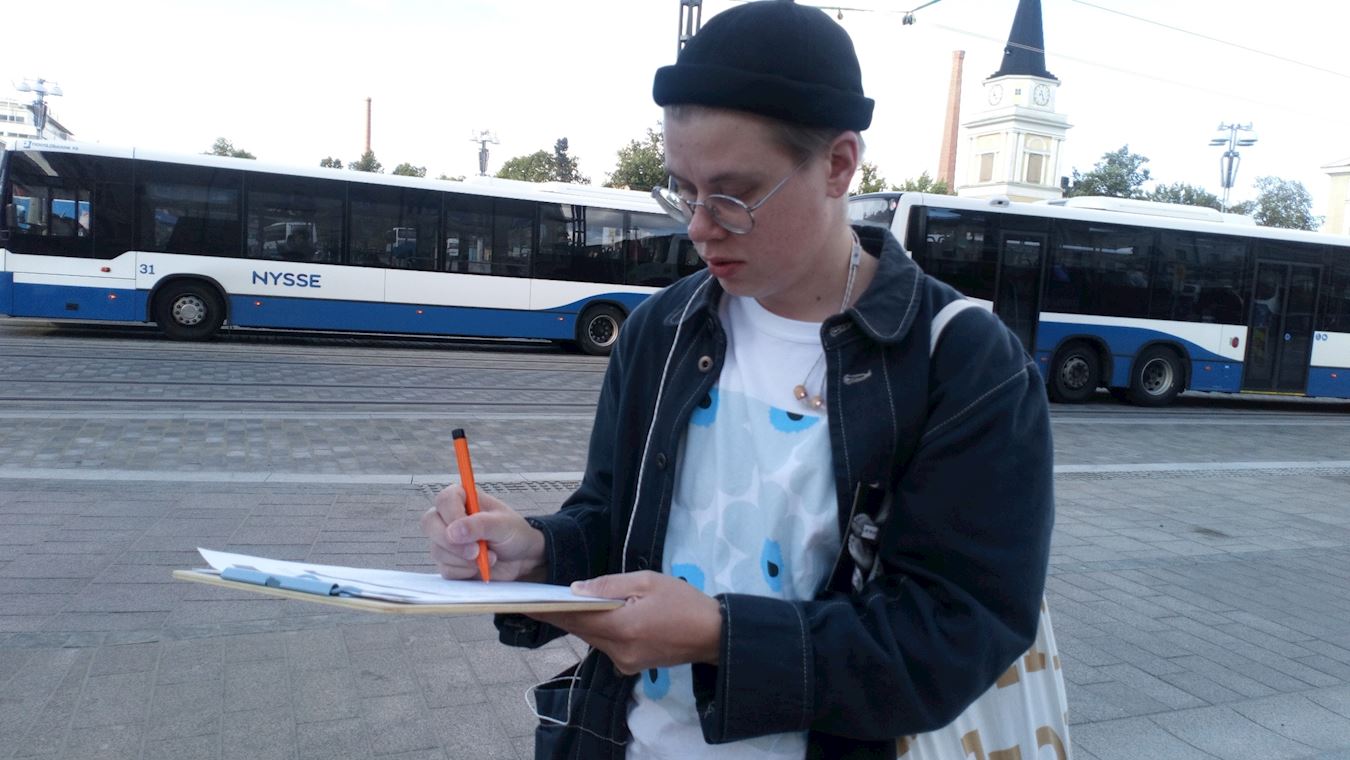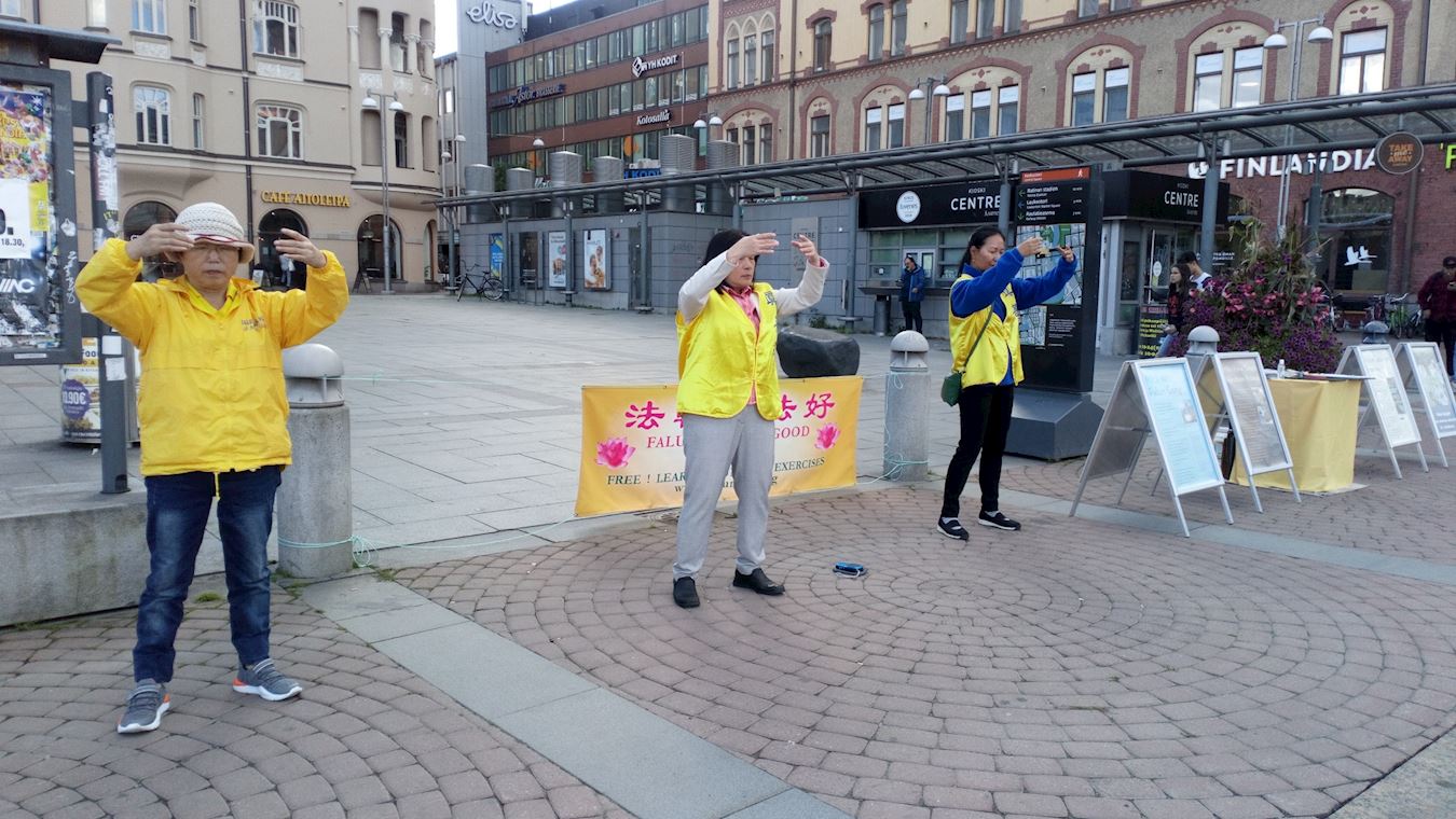 ![]() 图1:在坦佩雷市中心介绍法轮功。 |
