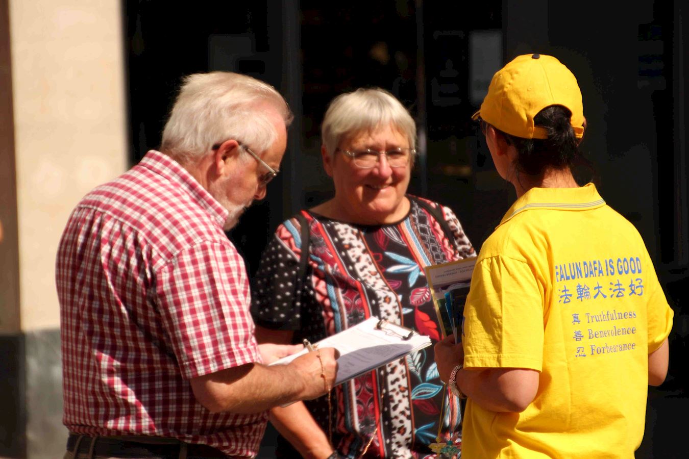 已经退休了的古德先生(Silvio Good)在签名支持法轮功学员后说:“就这样摘取别人的器官,如此不公的对待人实在是恶毒的行径。迫害是践踏人权,是没有人性,狠毒的(罪行),是对灵魂的屠杀,我还能说什么呢。”通过自己的签名:“我希望能够帮助你们(法轮功学员)让你们(反迫害)成功。”
