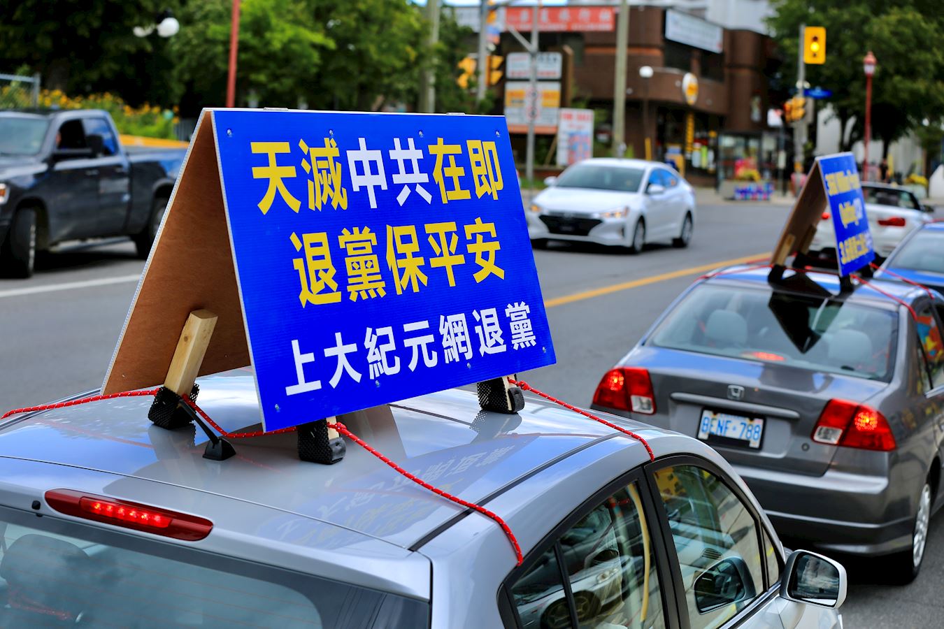 八月底以来,加拿大首都退!党!服务中心在“退!党!月”的三个周末举行的汽车游行活动不但获得了本地西方人的赞誉,也赢得了许多华人的支持和赞赏。活动组织者之一雷时钟博士接受采访时说:“我们的几次活动得到了包括华人朋友在内的许多渥太华市民的支持,路上很多人给我们竖起大拇指,或鸣笛表示支持。在大统华超市前,一些华人主动向我们表示支持、赞同和敬佩。和以往相比,华人对我们越来越理解、支持和同情,对中共不满和愤怒的表达也越来越有勇气了。”
