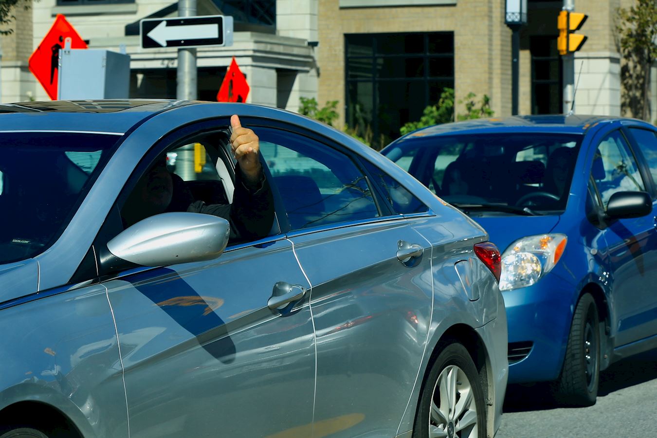 ![]() 图5~6:真相车队经过沿途,有民众竖起拇指表示支持。 |