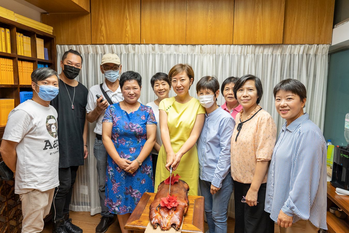 ![]() 图1:天梯书店香港第一间分店二零二零年九月十九日开幕,香港歌手阮民安(左二)及Explore Fusion Restaurant的营运总监李先生(左一)及行政总厨谈先生(右一)与天梯书店香港分店负责人梁珍(右二)向李洪志老师表达中秋祝福。 |