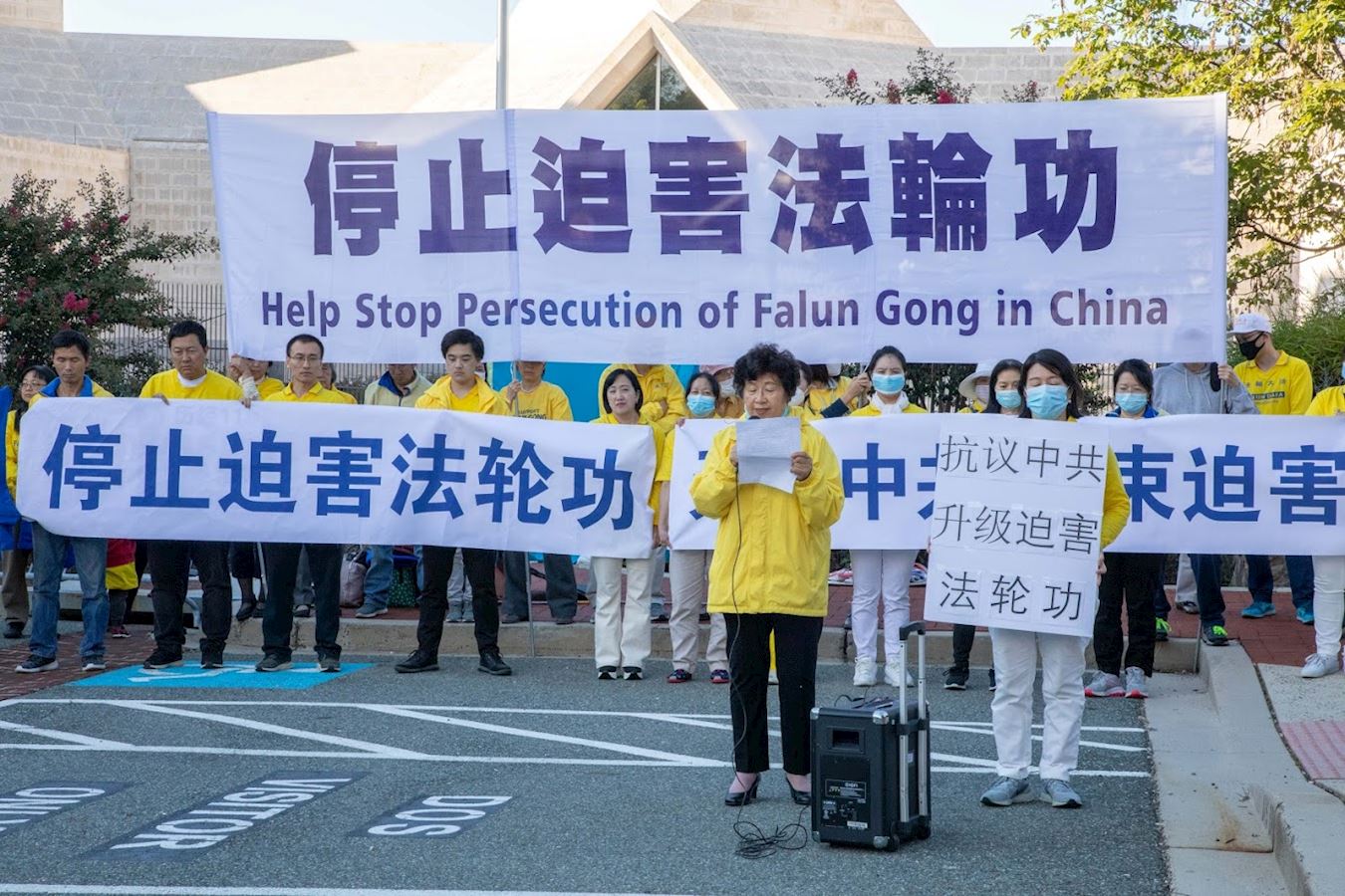 九月十九日下午,美国华盛顿地区的部份法轮功学员来到中使馆,抗议中共迫害。华盛顿DC法轮大法学会发言人林晓旭说:“中共在二十一年迫害法轮功大失败后,再搞‘清零行动’,只会让更多中国人反感、唾弃、远离、抛弃中共。”