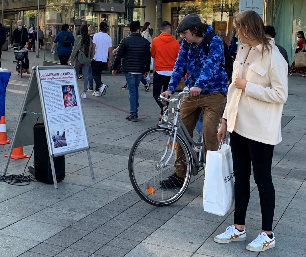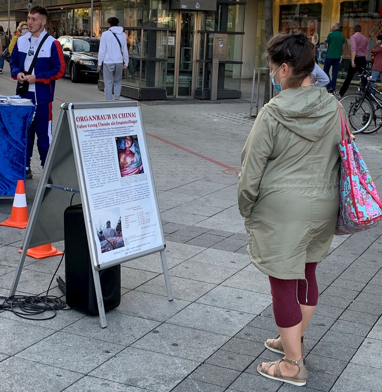 汉诺威医学院在世界闻名,那里有一个很大的(器官)移植中心。一位在汉诺威医学院工作的女医生在反对活摘器官的征签表上签名,并从信息展位上取走了很多资料。她向学员表示,她要将资料放在汉诺威医学院(Medizinische Hochschule Hannover)中。临走前,她对学员说:“我祝愿您一切都好,祝愿您能拥有很多的力量,来做现在您在这里做的事情。这件事情非常重要!”