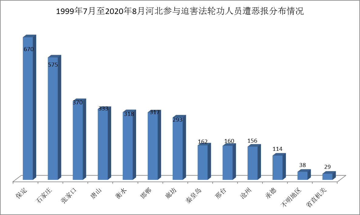![]() 图3 1999年7月至2020年8月,河北参与迫害法轮功各地人员遭恶报分布图 |