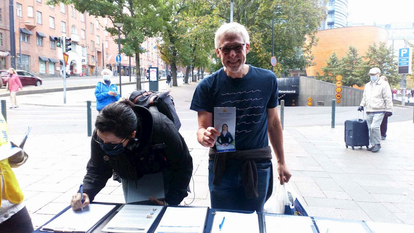 阿和提(Ahti)是一位加拿大人,居住在芬兰二十年了。他说几年前跟大卫·乔高有过交谈,对中共残酷迫害法轮功,和中共活摘法轮功学员器官的事情很了解。那是在二零一七年,芬兰议会人权网路组织(Finnish Parliament Network on Human Rights)举行了揭中共活摘罪行的研讨会,该人权组织主席艾娃‧比奥德(Eva Biaudet)女士主持了会议,大卫·乔高在现场应用大量的调查资料讲述中共活摘器官的事实。