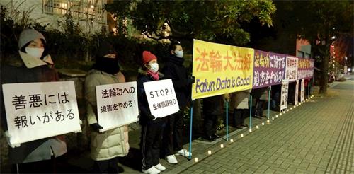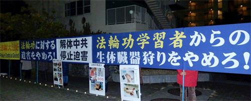 名古屋车站是市内最繁华的地段之一。二零二一年一月九日,法轮功学员们在车站JR高岛屋(TAKASHIMAYA)方向出口的道路两边,打出了“法轮大法好”、“真、善、忍”、“法轮大法弘传世界”、“SOS停止迫害法轮功”与“SOS全世界署名活动”、“中共立即停止活摘法轮功学员器官”等中英日文内容的横幅,向过往的人们发送法轮功的真相资料,并征集签名。