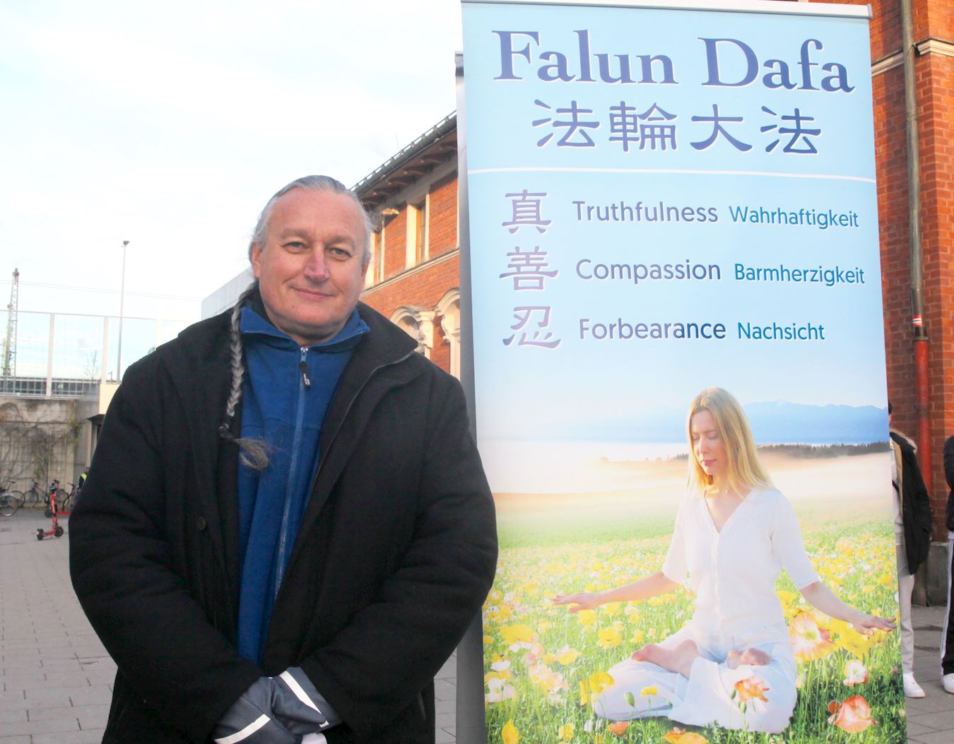 二十年前,费勒德开始修炼法轮功。在此之前,他对亚洲的文化和修行很感兴趣,也在不同的修行方法中寻寻觅觅。他也学过禅宗,后来放弃了,“因为我意识到它已经到了尽头。我很失望,不相信自己此生还能有一条真正的路可走,因为它已经变得如此肤浅。”