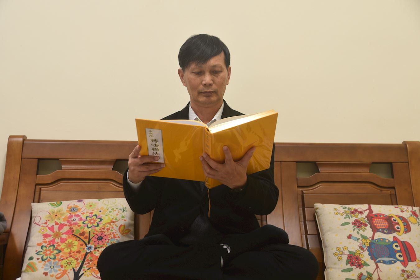 ![]() 图2:廖伟辰在读法轮大法书籍,表示他已拥有生命中最珍贵的财富。 |