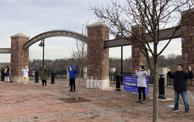 冬天的户外寒风吹过,每个学员炼功都是那么的端庄祥和,脸上都是暖意融融。他表示:“和同修在一起心里也感到特别亲切温暖,感到不再憋屈,在户外集体炼功就会感到周围的空间都充满了正的能量场,马路上来往的车辆和行人也感受到这种正的能量场,也在一点一点影响着这个世界、改变着这个世界。”