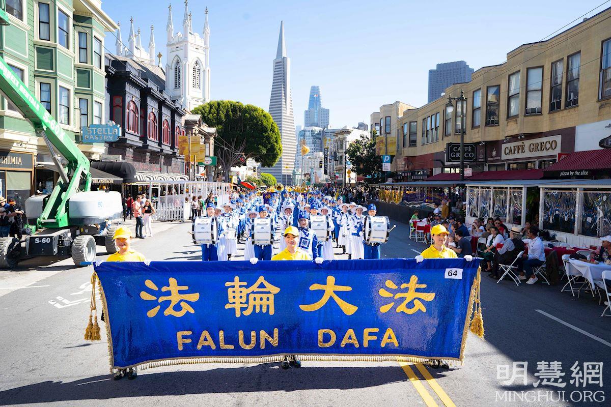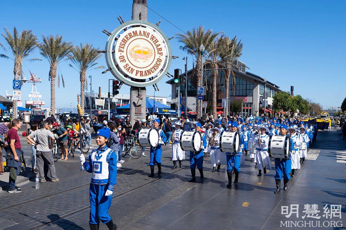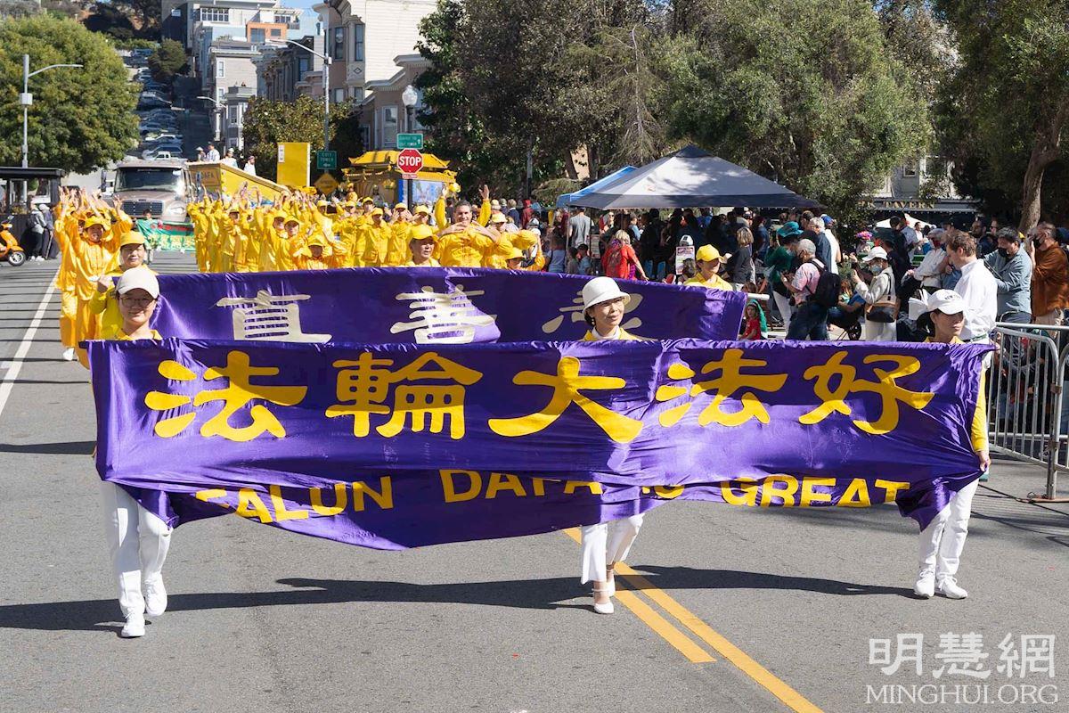 旧金山居民玛琳达·沙利文(Malinda Sullivan)女士表示,她很喜欢天国乐团演奏的乐曲,她认为法轮功学员的队伍太棒了。她听说法轮功在中国受到迫害,感到难过,她支持法轮功。“我们支持法轮功,支持他们修炼的权利。”
