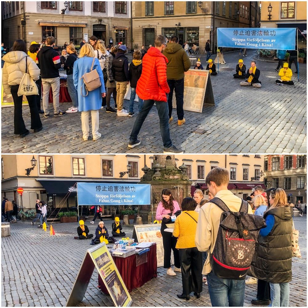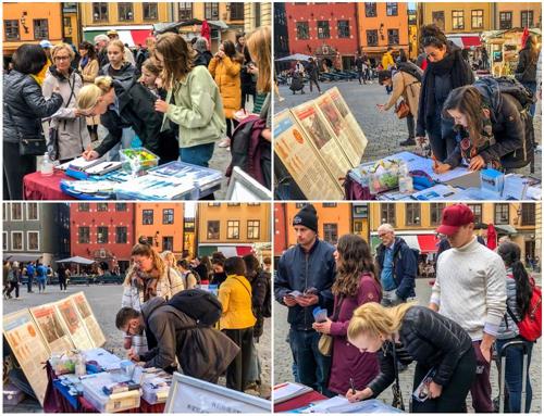 【明慧网二零二一年十月十一日】(明慧记者何平瑞典报道)二零二一年十月八日和九日中午,法轮功学员在瑞典首都斯德哥尔摩诺贝尔博物馆前举办讲真相活动。