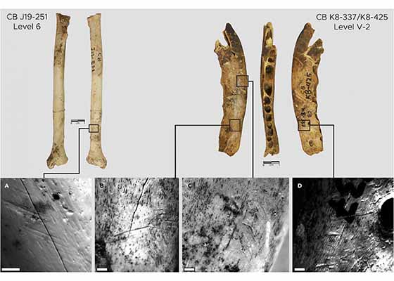 论文指出,出土的这些工具,有些是用牛肋骨制成的宽而圆的刮刀,可去除毛皮内结缔组织而不会刺穿毛皮。刮刀这种工具在现代生皮加工中仍在使用。洞穴中还有许多食肉动物遗骸有切割痕迹,与现代毛皮去除技术留下的痕迹一致,如洞中沙狐、金豺和野猫等的爪子和下颌骨上的切口。