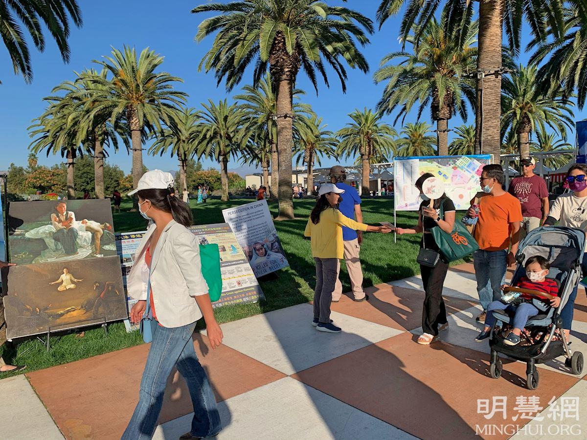 ![]() 图1:二零二一年十月九日,法轮功学员参加了“尔湾地球村节”,向人们介绍法轮功。 |