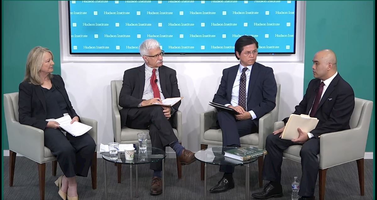 华盛顿DC法轮大法学会发言人林晓旭(Sean Lin)博士、前美国国务院民主及人权暨劳工局助理国务卿、法学教授罗伯特·德斯特罗(Robert Destro)、哈德逊研究所高级研究员努里·特克尔(NuryTurkel)受邀参与讨论。