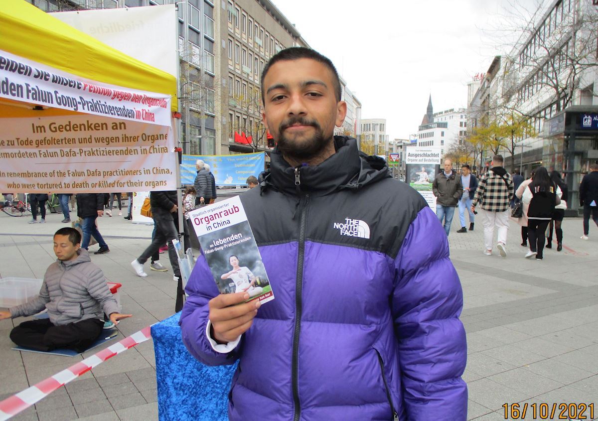 在儿童援助机构工作的丹尼尔(Daniel)跟学员进行了很长时间的交流,了解到了事实的真相,签名声援法轮功学员制止迫害。他说:“如果我的签名对此(制止中共迫害)有帮助,我很乐意签名。”