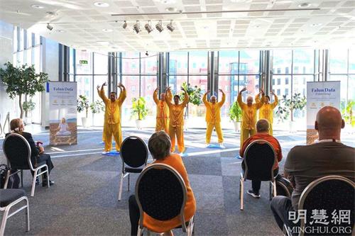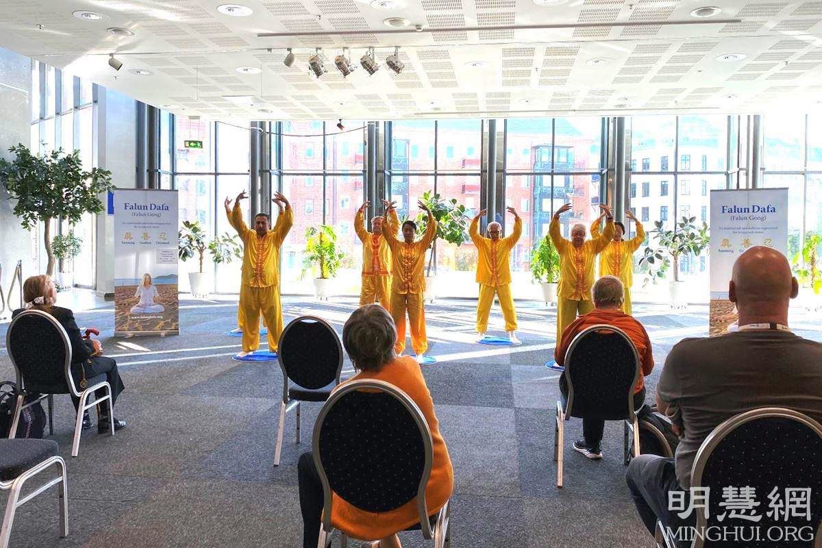 ![]() 图1~3:二零二一年九月二十三日至二十六日,第三十六届瑞典哥德堡书展期间,每天下午,当地法轮功学员应邀展示法轮功五套功法。 |