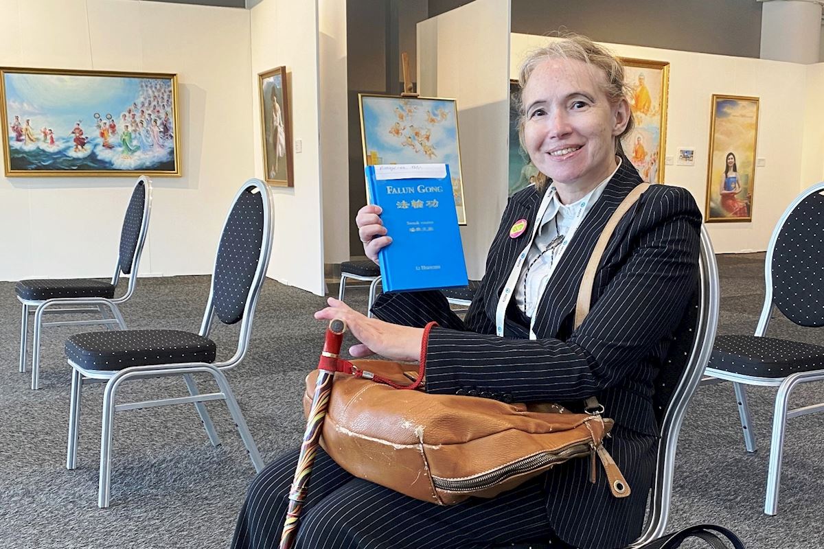 她很认同真、善、忍的法理,认为这个法理会使人和世界变得美好。书展的最后一天,她在第一排一边观看功法演示,一边翻阅着瑞典文的《法轮功》一书。书展结束时,她请购了一本《法轮功》并小心翼翼地放在包里后,才满意地离开。