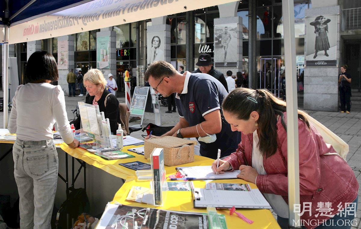 ![]() 图4:十月二日,在康士坦茨(Konstanz)的奥古斯缇纳(Augustinerplatz)广场上,了解真相后的路人签名支持制止中共活摘罪行。 |