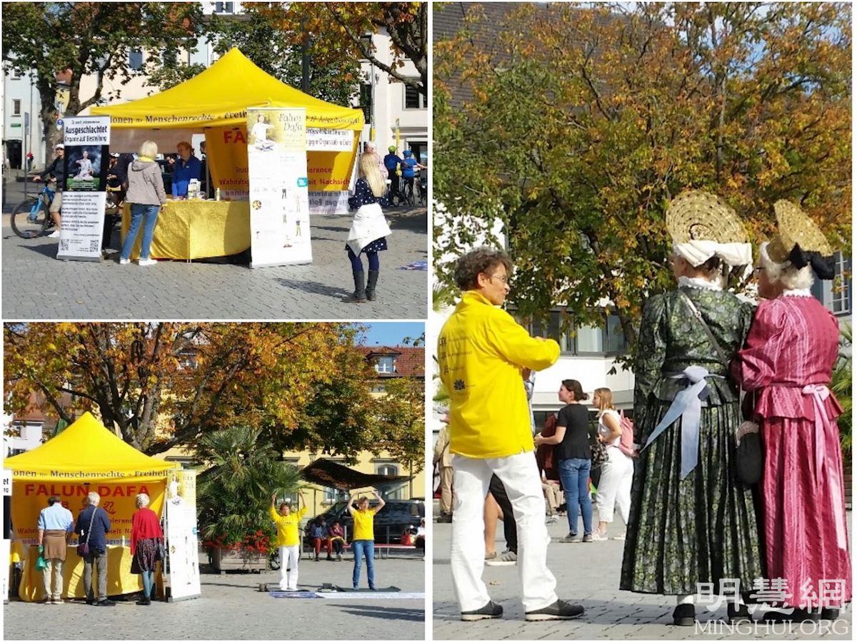 ![]() 图1:二零二一年十月的第一个周末(十月二日和三日),法轮功学员在博登湖畔九个城市举办信息日活动,传播法轮功的真相,并征集签名制止迫害。 |