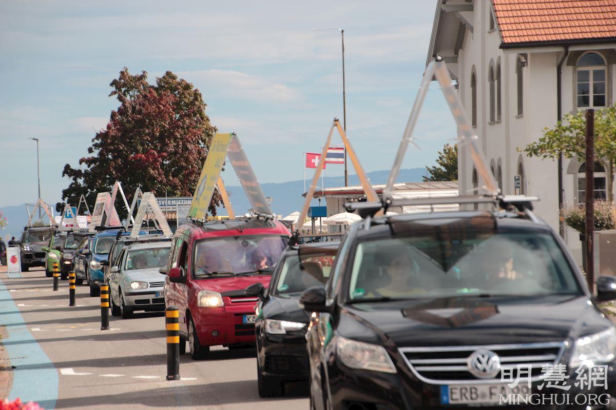 这两天,“法轮大法好”、“征集签名制止中共活摘法轮功学员的器官”、“请帮助制止迫害法轮功”等横幅和展板出现在博登湖畔(Lake Constance)的三个国家九个城市,从德国的康士坦茨(Konstanz),路德维希港(Ludwigshafen),于伯林根(Überlingen),梅尔斯堡(Meersburg),到和瑞士隔湖相望的腓特烈港(Friedrichshafen),旅游城市林道(Lindau)经过奥地利西部的布里根兹(Bregenz)至瑞士的小城洛尔沙赫(Rorschach)和罗曼宗(Romanshorn),绕湖一周,出现在热闹的市中心,火车站旁,及湖边人们休闲娱乐的场所。