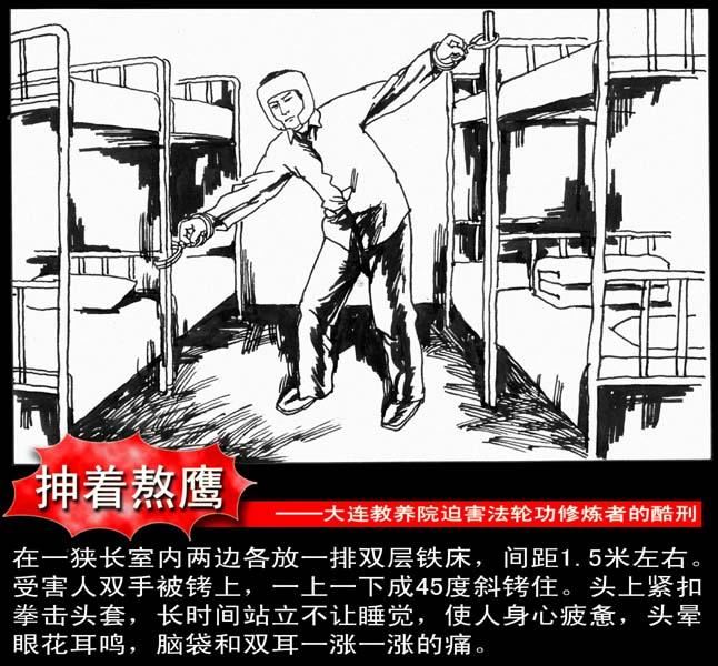 恶警为了强迫谢汉柱放弃信仰,还对他实行一种“熬鹰”的酷刑,每隔六天只准他睡两个小时。一天,谢汉柱拒绝写不修炼的保证,恶人许棉益从身后用右拳对右胸猛击,谢汉柱被击倒站不起来,一根肋骨被打凹陷下去。