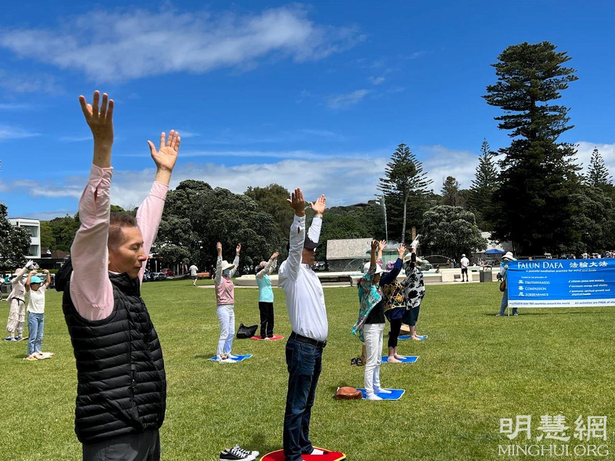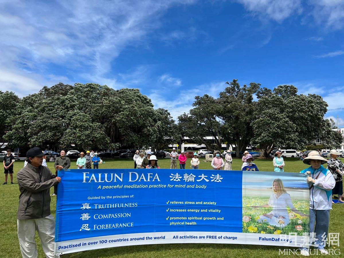 ![]() 图1~3:奥克兰法轮功学员集体炼功,场面祥和。 |