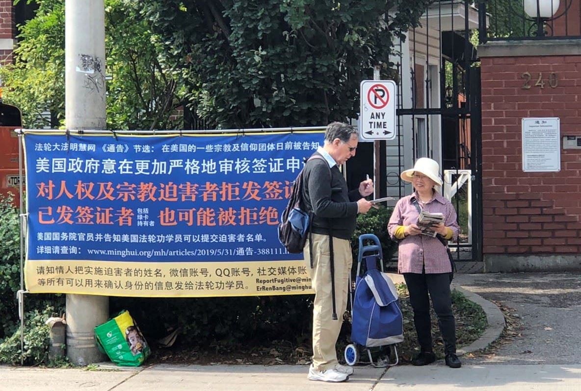 ![]() 图2:丽莎十几年来常看到的多伦多真相点之一:中领馆前 |