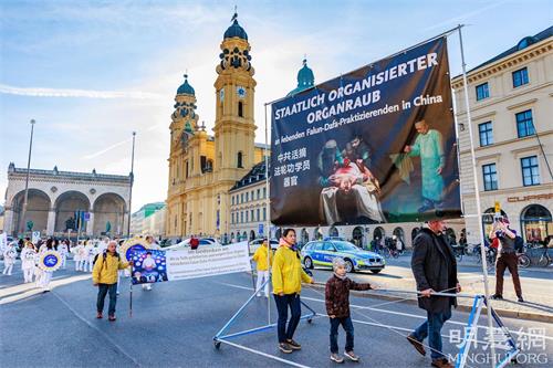 ![]() 图1:二零二一年十月二十九日,法轮功学员在德国慕尼黑举办大型集会和游行,展示法轮功的美好,揭露中共迫害和活体摘取法轮功学员的罪恶。图为游行队伍从玛利亚广场(Marienplatz)出发。 |