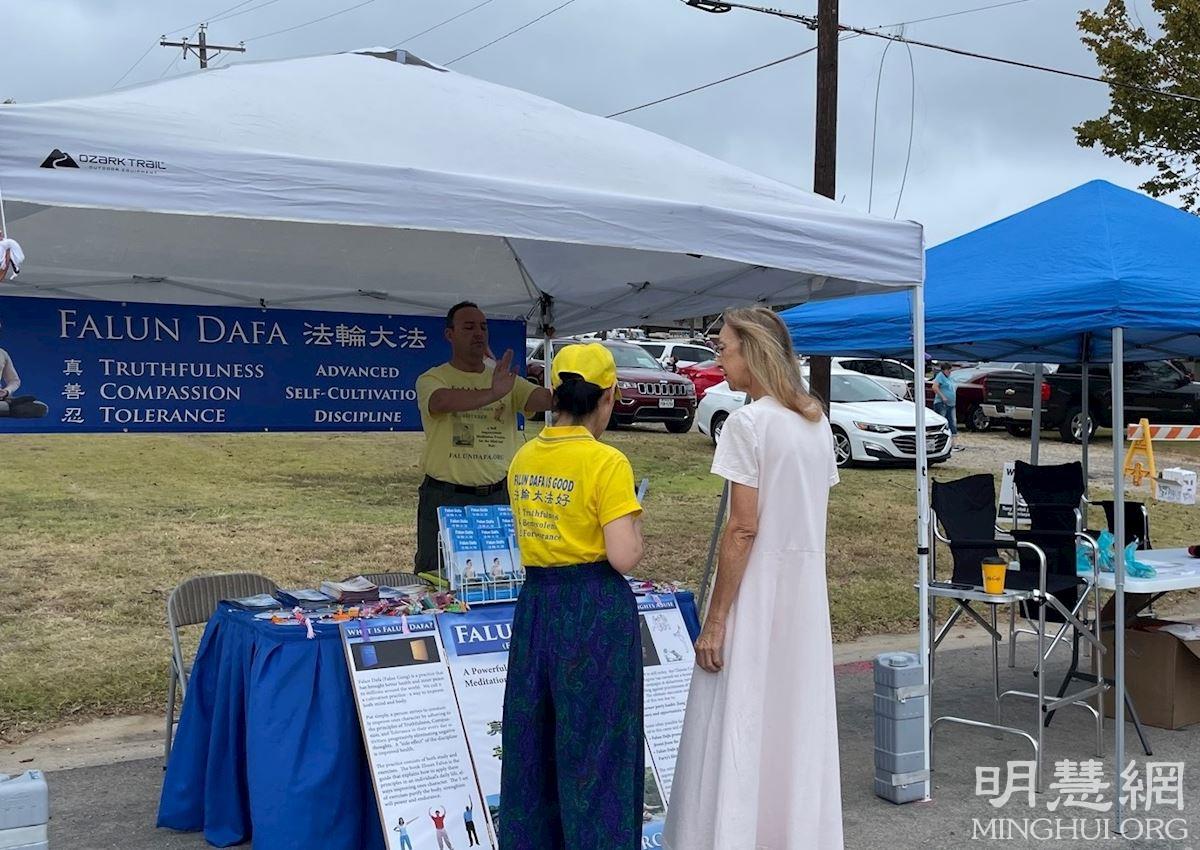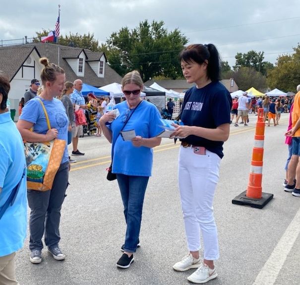 米歇尔(Michelle)女士与朋友一起来花生节游玩,她说收获很大,因她知道中共迫害地下教会的基督徒,现在又知道了它对法轮功的迫害,明白了这是中共的本质,它就是反对任何正信信仰。