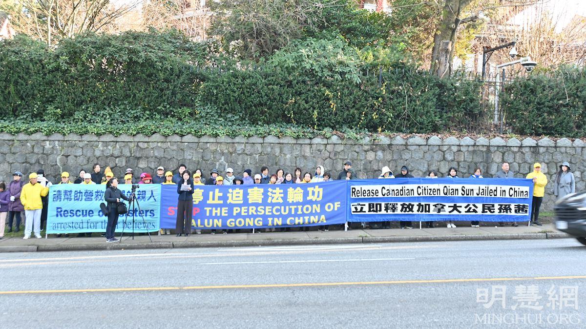 ![]() 图1~2:二零二一年十二月八日,温哥华部份法轮功学员在中领馆前集会,敦促总理特鲁多为人权发声,要求中共释放被关押的加拿大公民,并制裁迫害人权的中共官员。(明慧网) |