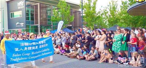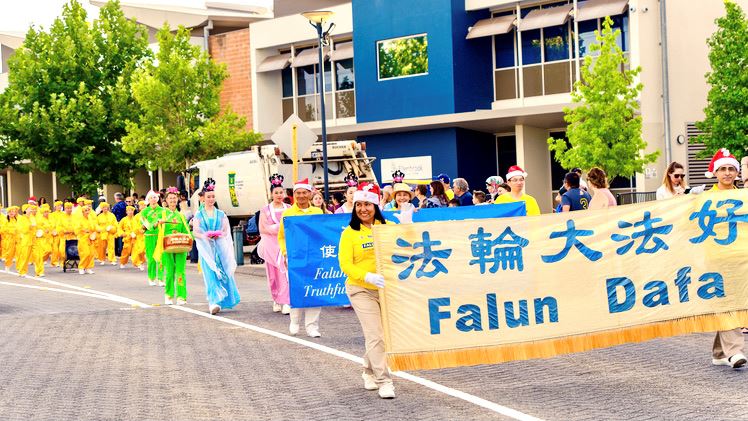 当天,法轮功成为圣诞游行中人数最多、色彩最亮丽、气势最壮观的一支游行队伍。人们为法轮功热烈鼓掌,他们用掌声称赞法轮大法的美好。
