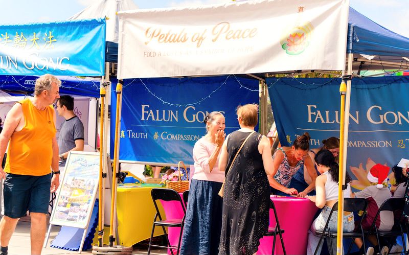 ![]() 图7:位于艾伦布鲁克(Ellenbrook)购物中心出入口处的法轮功展位,吸引众多游客驻足了解真相,有的在请愿书上签名,支持法轮功反迫害。 |