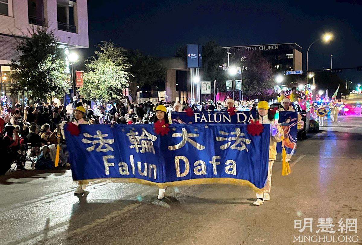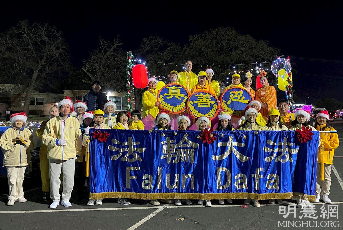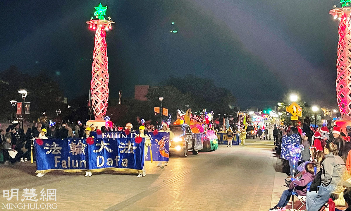 ![]() 图1~2:法轮功学员参加德州阿灵顿市圣诞游行 |