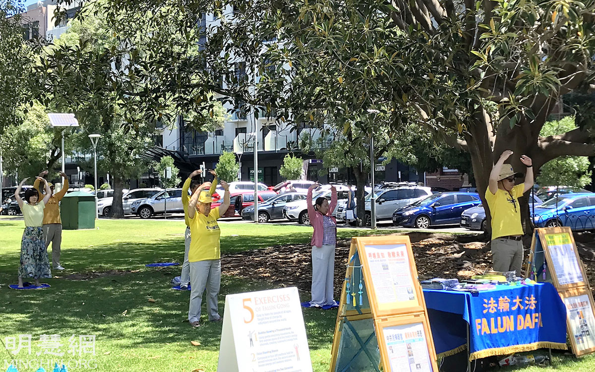 ![]() 图1~2:二零二一年十一月二十八日,法轮功学员在阿德莱德市中心的欣德马什广场(Hindmarsh Square)展示功法。 |