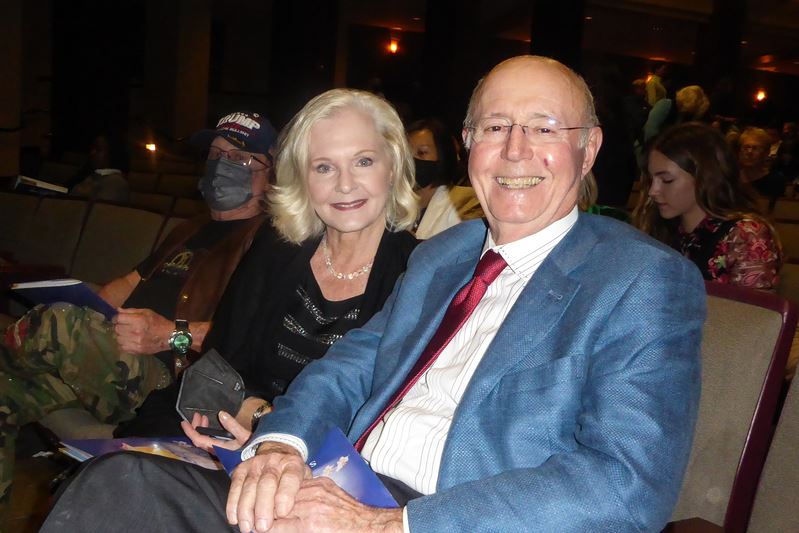 .纪.元;)'>图2:二零二一年十二月十八日晚,智库董事、资深房地产开发商汤姆·格雷厄姆(Tom Graham)和邦妮·霍尔曼(Bonnie Holman)女士观赏了神韵在北查尔斯顿的首场演出。他说:“表演非常棒,我很欣赏。很开心能来观赏。”(图片来源:大.纪.元;) |