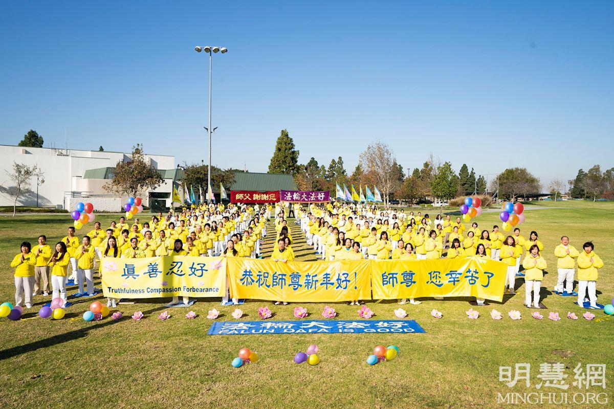 ![]() 图2:二零二二年新年将临, 洛杉矶法轮功学员恭贺师父新年好! |