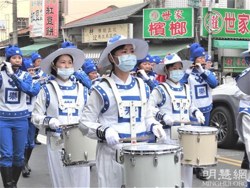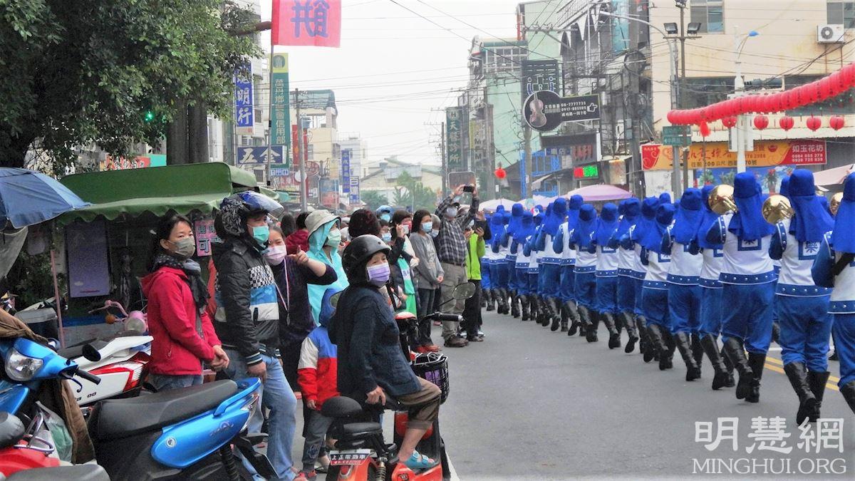 当天国乐团队伍行经到万丹妈祖庙万惠宫时,突然鞭炮声接连响起,庙方志工表示,燃放鞭炮是欢迎法轮大法天国乐团的到来,是表达“欢迎”的意涵。