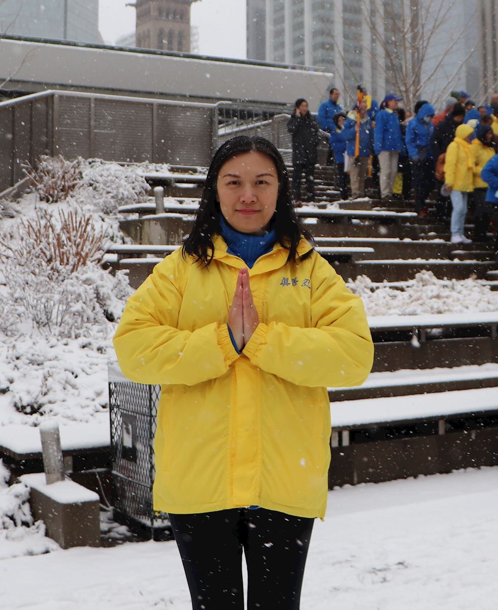 零五年曾慧因家庭原因来到海外。二零一九年她开始参与大瀑布景点讲真相弘法活动,到今年已经是第三个年头了。她说:“大瀑布团队的学员们为了把大法的美好带给世人,坚持不懈、风雨无阻的毅力与无私的团队合作精神是我比学比修、保持修炼如初的状态、不断精進的动力。”